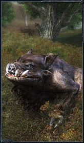 Дикий кабан, щетина котрого сползла на живот. Агрессивен и очень опасен вблизи (полтора метра в холке), но противостоять ему не очень сложно. Во-первых, он нападает по прямой, разгоняясь как носорог. Во-вторых, он так подслеповат и в ярости обычно не видит аномалий - и уж тем более не сумеет вовремя свернуть, если сталкер отбежат в сторону.